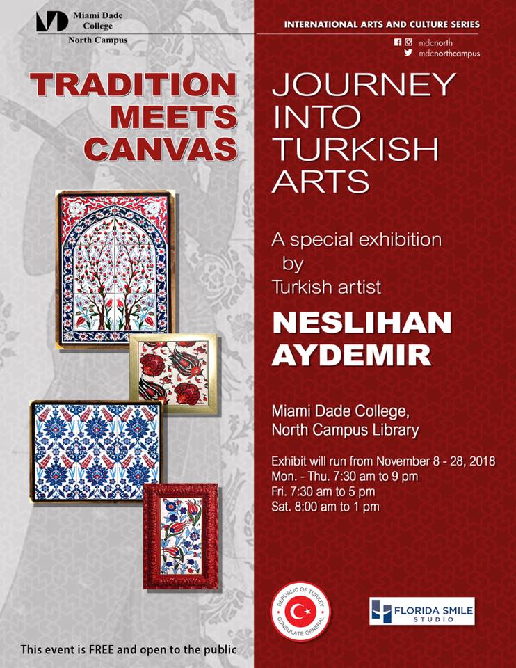 We invite all our friends to the art exhibition of Turkish painter Neslihan Aydemir, to be inaugurated on November 7, 2018 at 18:00 at the Library of the North Campus of Miami Dade College. The exhibition will be on display until November 28, 2018.