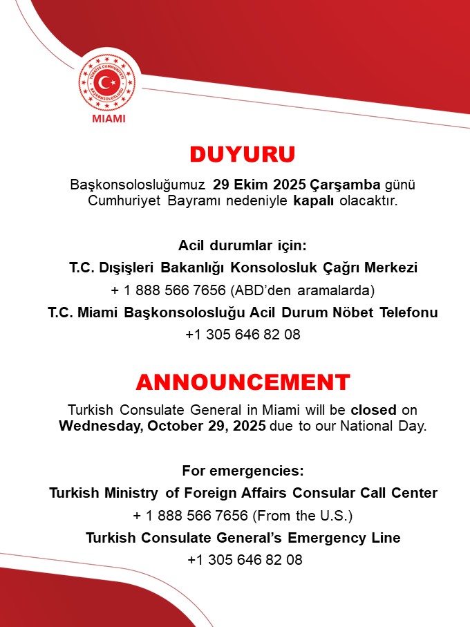 | 10/29/2025 | 10/29/2025 | Turkish National Day |